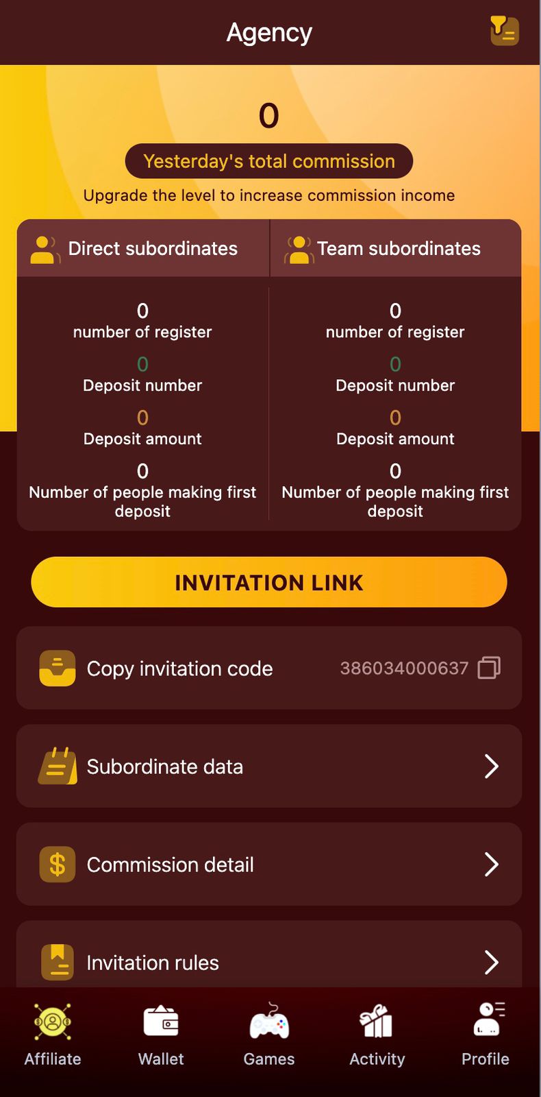 Once registered, you will be redirected to the game dashboard